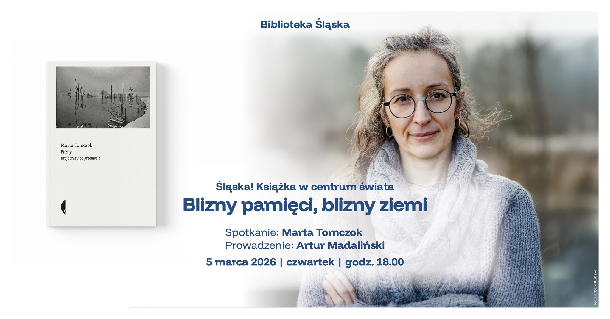 W czwartek, 5 marca 2026 roku w Bibliotece Śląskiej odbędzie się spotkanie promujące najnowszą książkę Marty Tomczok „Blizny”, która ukaże się nakładem Wydawnictwa Czarnego. Wydarzenie rozpocznie się o godz. 18.00 w Sali im. Feliksa Netza. Wstęp jest wolny. Spotkanie poprowadzi dyrektor Biblioteki Śląskiej, Artur Madaliński.