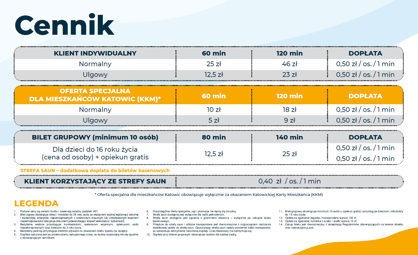 Godziny otwarcia oraz ceny karnetów i biletów na Basen Zadole