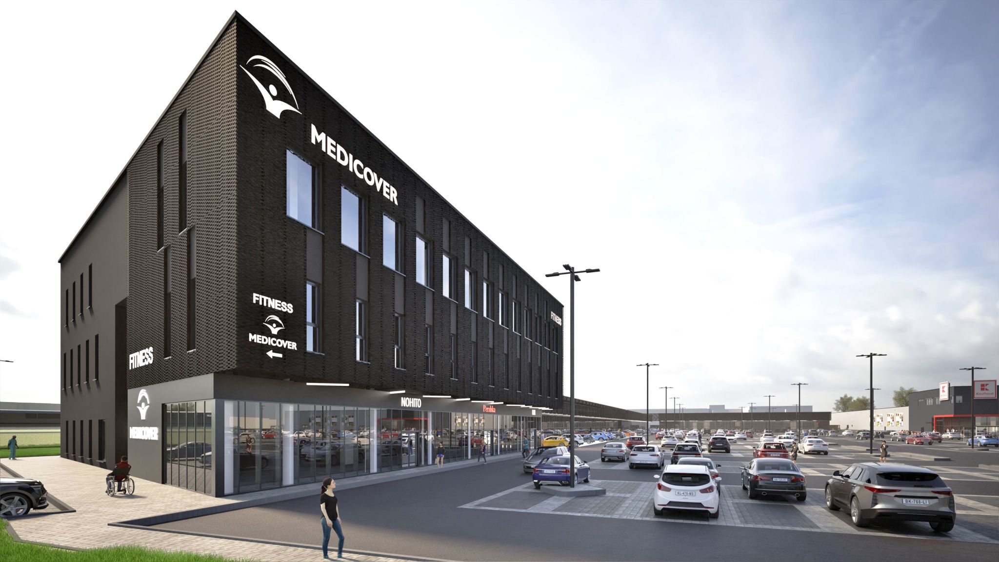 Jak widać na wizualizacjach, czarną elewacją będzie nawiązywać do wyglądu całego parku. Na parterze będzie miejsce na sklepy, na piętrze - na biura lub punkty usługowe, np. fitness club. Zresztą w pozwoleniu na budowę jest ujęty właśnie "budynek usługowo-handlowy wraz z pylonem oraz niezbędną infrastrukturą techniczną". Już wiadomo, że 1300 m2 zajmie tu Centrum Medyczne Medicover, również ze swoją ofertą fitness.