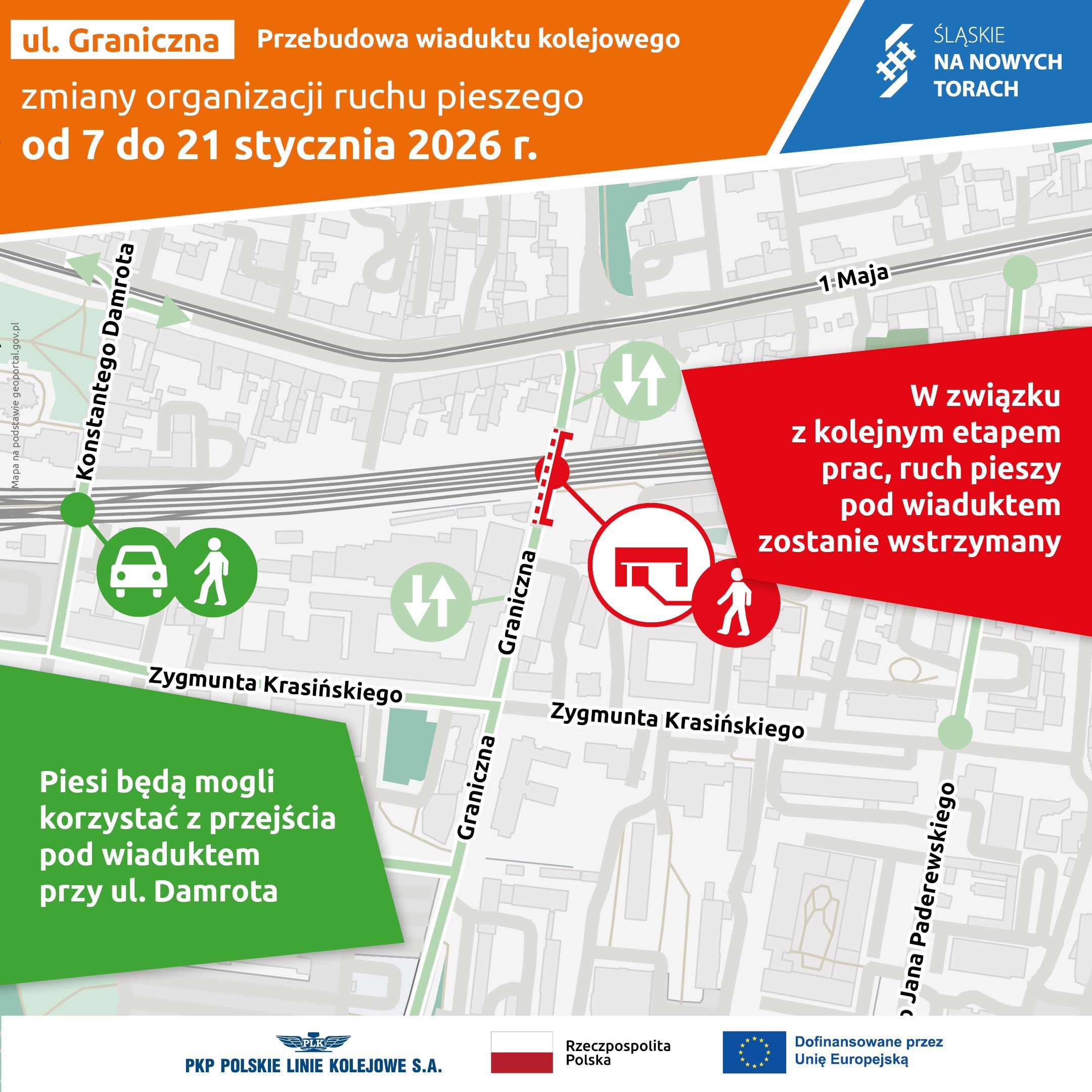 - 21 stycznia przejście pod wiaduktem nad ul. Graniczną zostanie udostępnione (już na stałe) dla pieszych