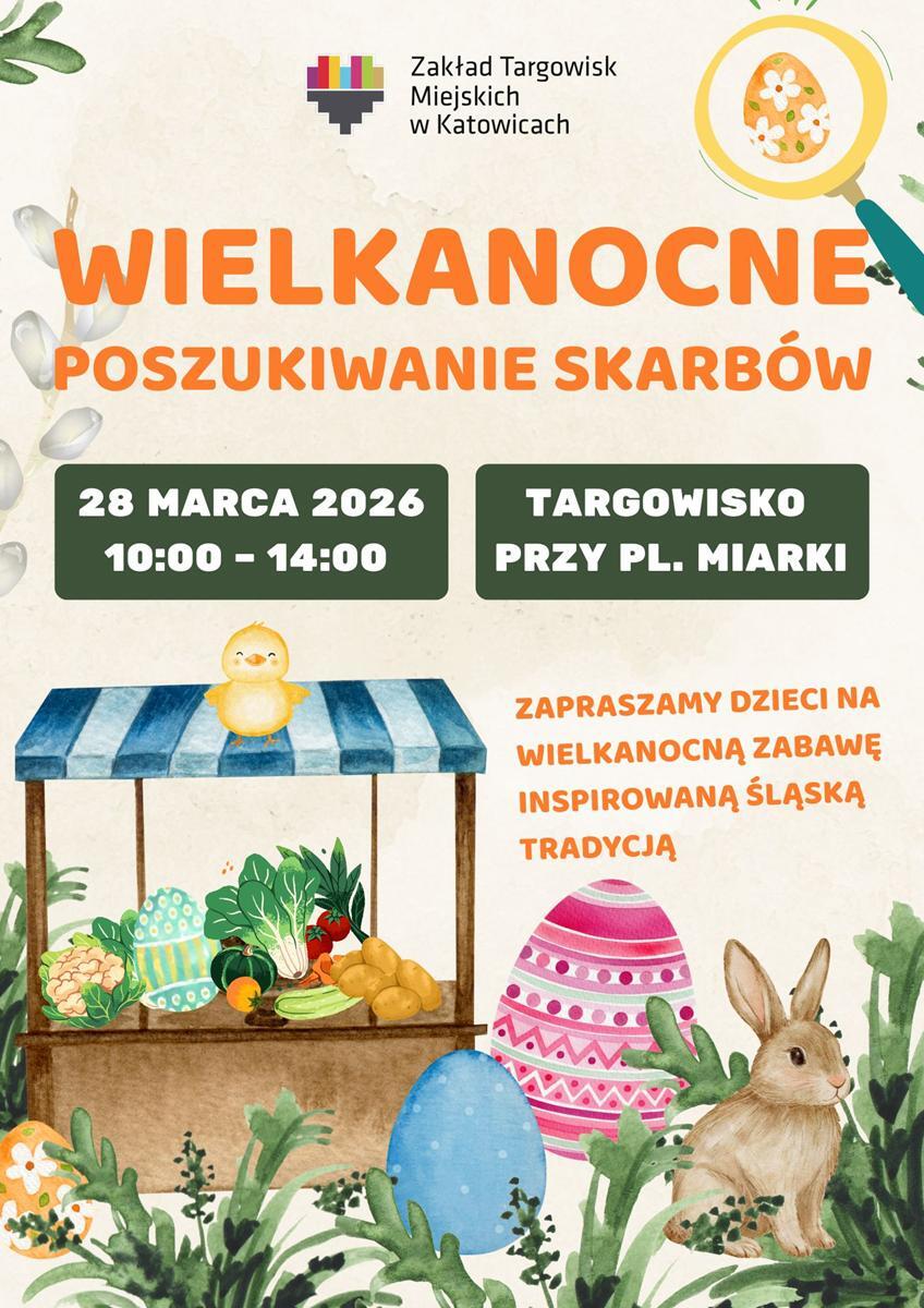 W najbliższą sobotę, 28 marca 2026 r. targowisko przy pl. Miarki w Katowicach zamieni się w przestrzeń wielkanocnej zabawy dla najmłodszych. Od 10:00 do 14:00 dzieci będą mogły wziąć udział w „Targowym poszukiwaniu skarbów” – zabawie inspirowanej śląską wielkanocną tradycją.